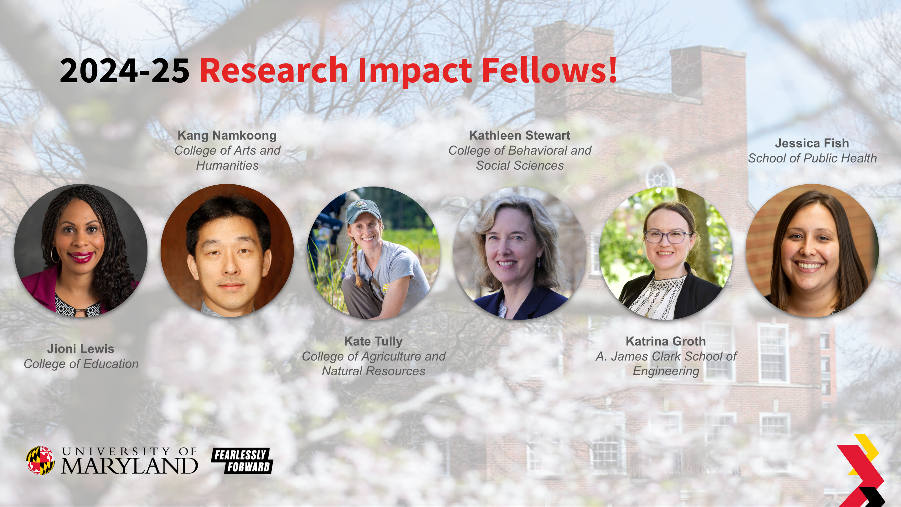 The 2024-25 Research Impact Fellows include faculty from the College of Education, College of Arts and Humanities, College of Agriculture and Natural Resources, College of Behavioral and Social Sciences, A. James Clark School of Engineering, and School of Public Health. Together, they have expertise in mental health, racism and sexism, health communications, food production sustainability, climate change, and energy systems. They have been quoted in The New York Times, The Atlantic, and Today and have over 27,000 citations.